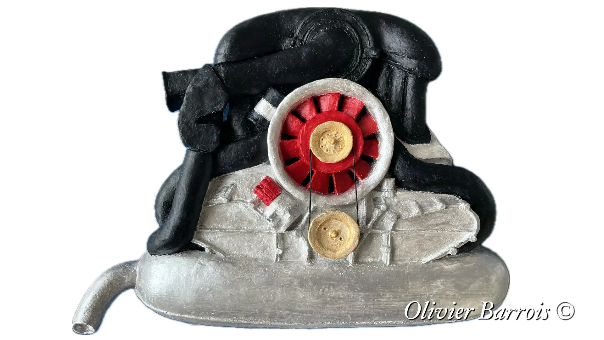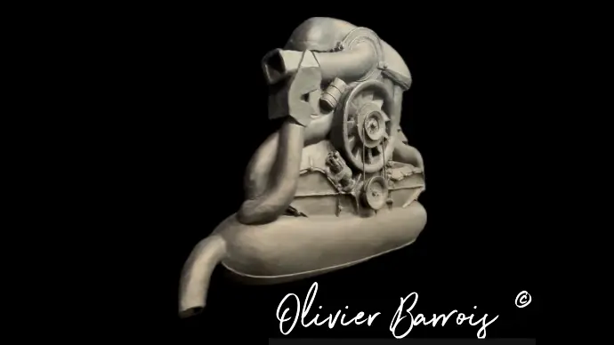 This bas-relief wall sculpture pays particular homage to the famous Porsche Flat 6 engine, cornerstone of the Porsche 911 success over more than the last 60 years.